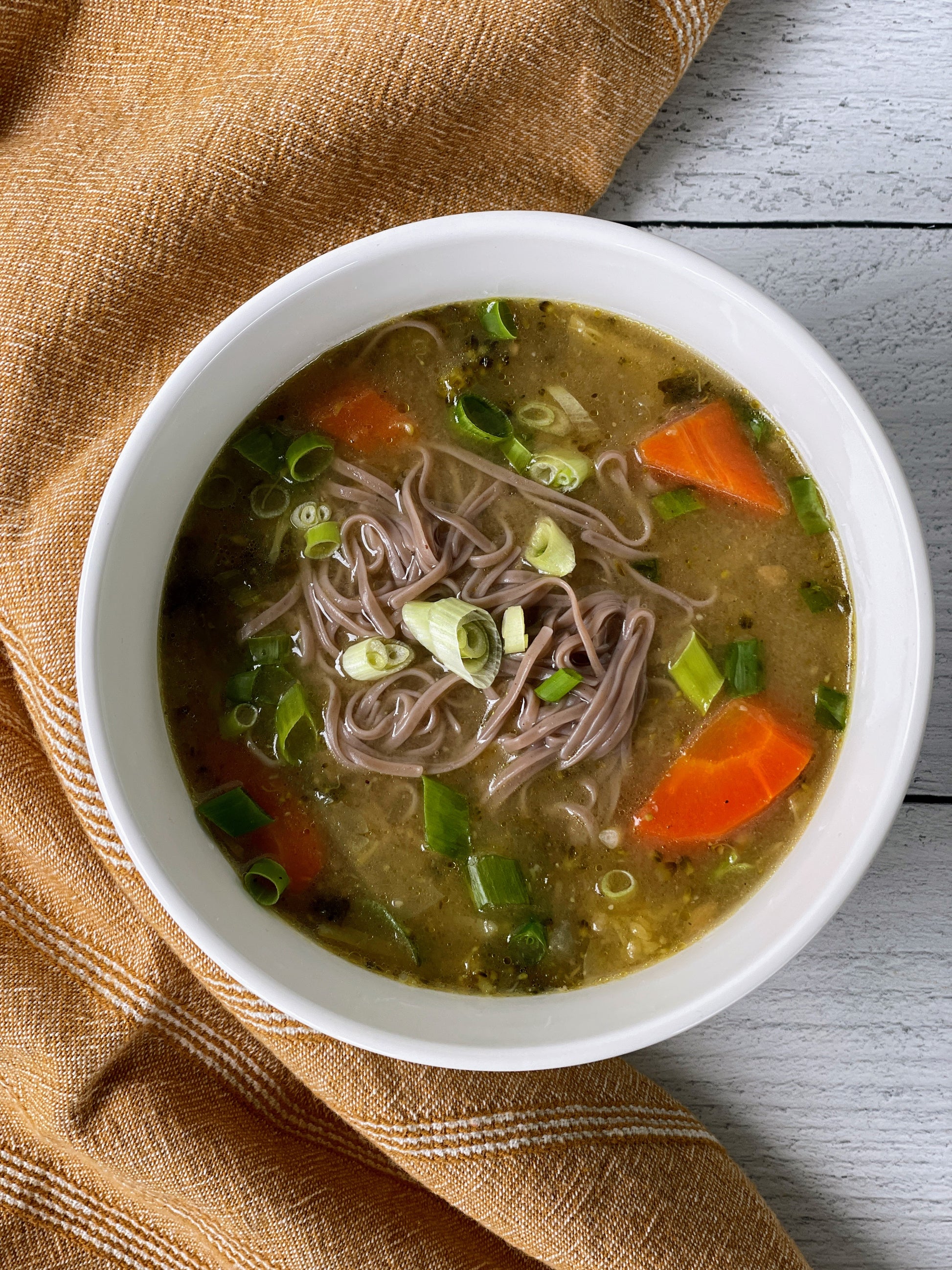 with Napa Cabbage, Carrots, Broccoli, Buckwheat Soba, Chickpea Miso
