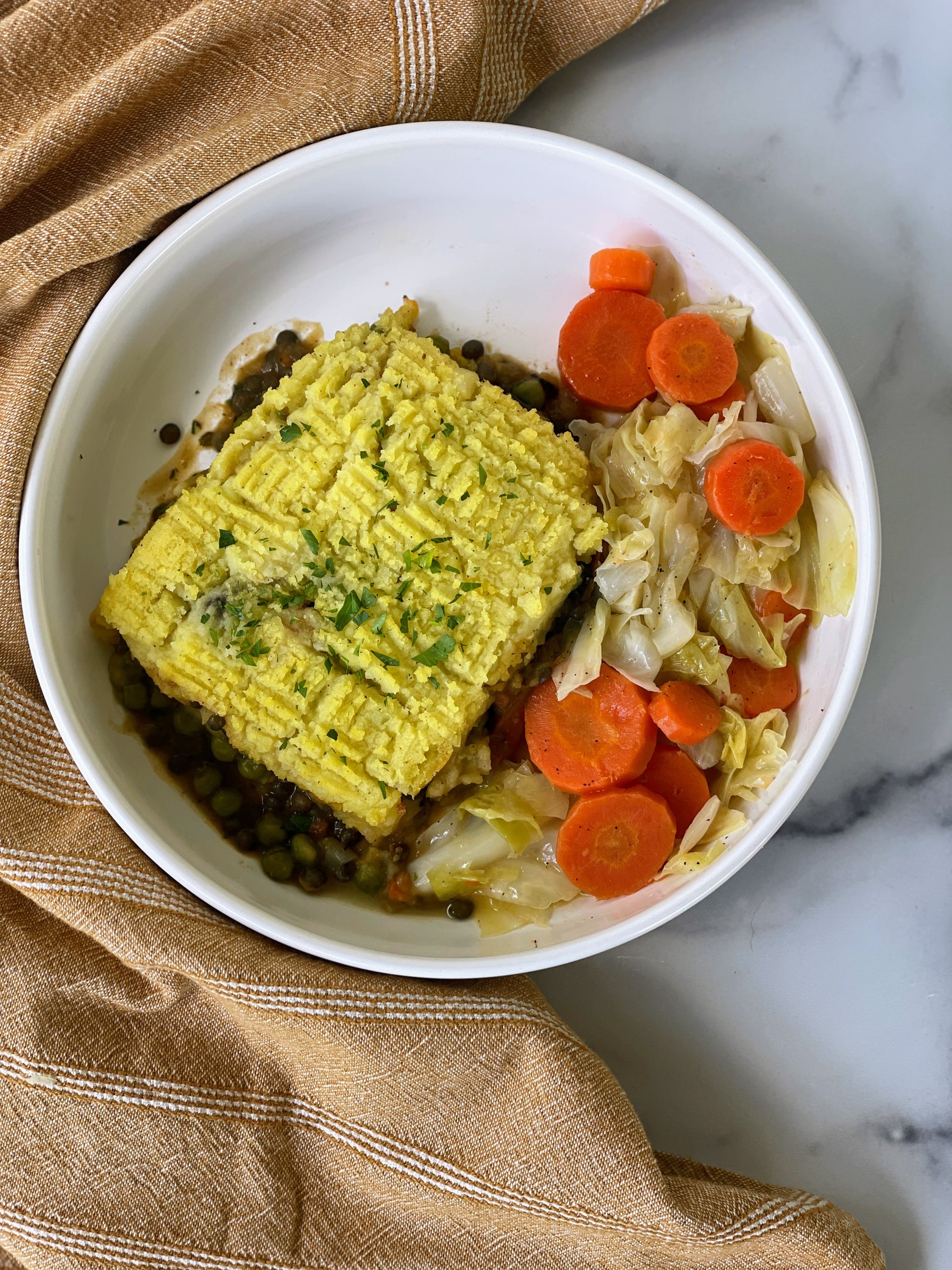 with Lentil & Mushroom Pie, Irish Cabbage & Carrots