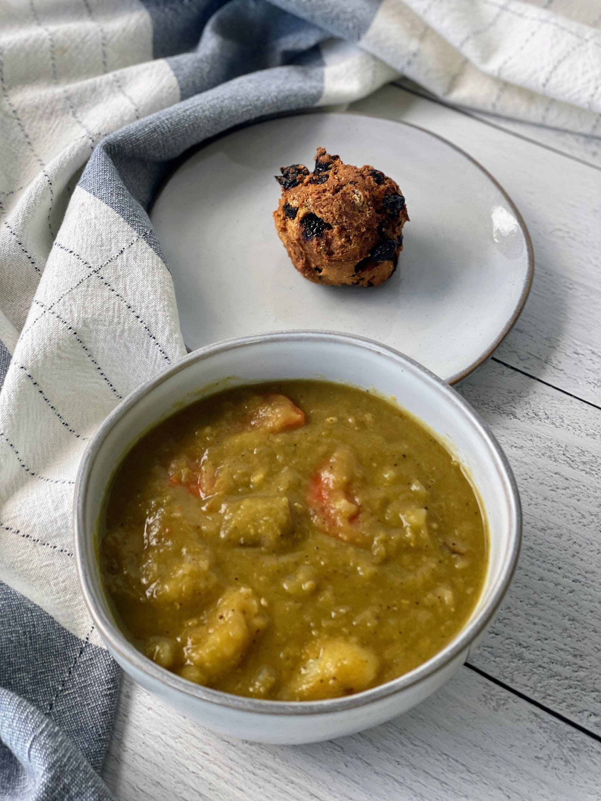 A warm cup of Split Pea Soup & a slice of Irish soda bread truly feels like a loving hug from our “wee Granny”. Ours is chock full of savory garlic & onions with sweet carrots & creamy potatoes. We’re serving the soup alongside an Irish Soda Bread muffin. This recipe was passed down from Nina’s Irish grandmother (with a couple GF & plant-based swaps) & it brings us so much joy to share it!