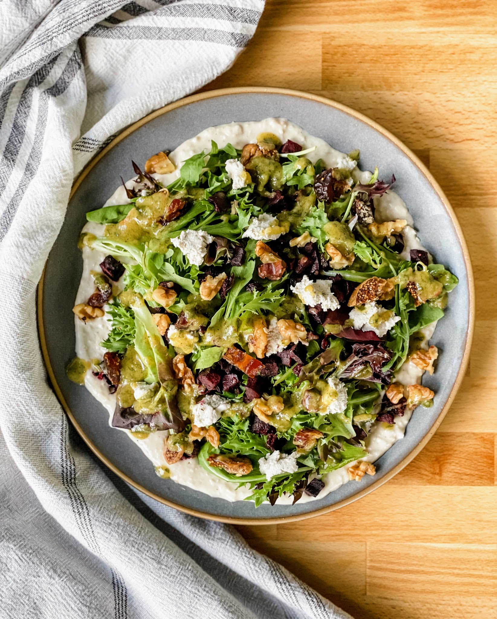 WHITE BEAN HUMMUS, ROASTED BEETS & GOAT CHEESE SALAD